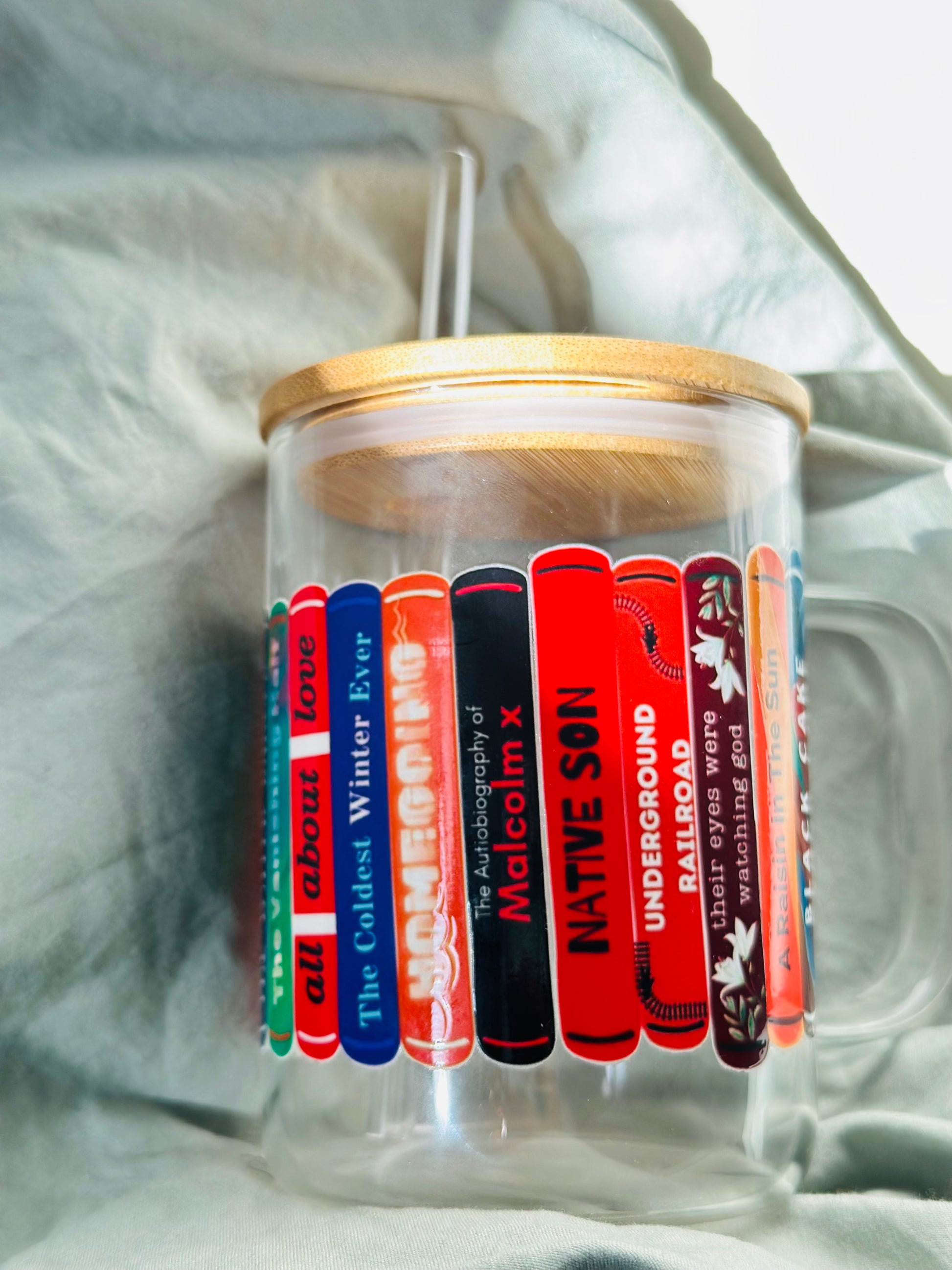 Clear or white 15oz mug with popular Black author books wrapped around. In a sturdy wrap that with proper care will still be just as beautiful down the line.